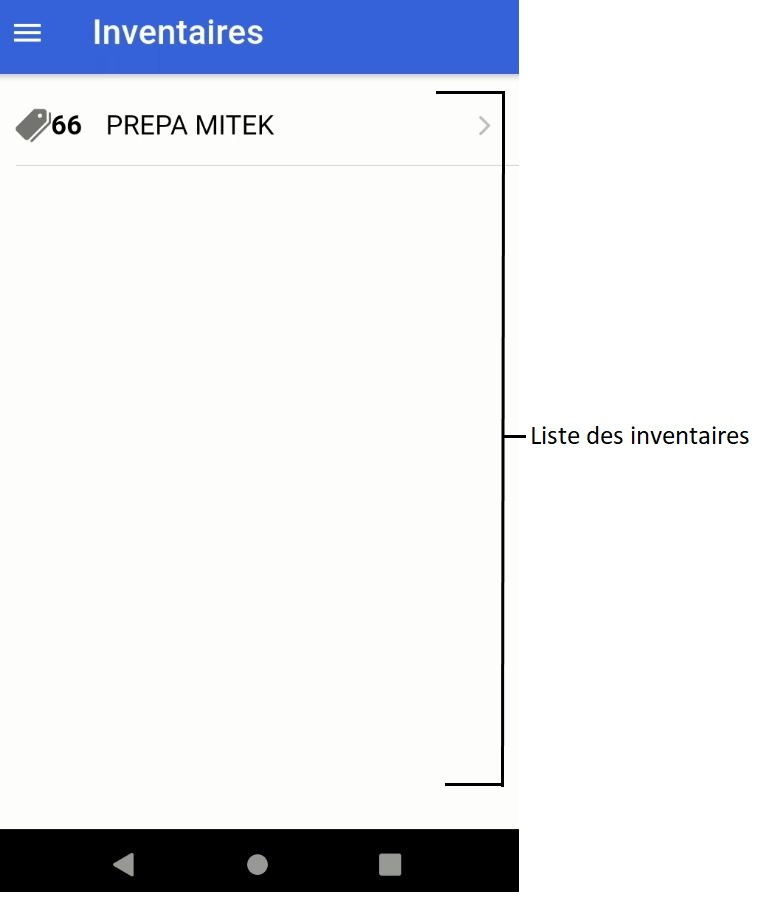 Attention : Le bouton Inventaire supprime les inventaires sur le terminal, et récupère les nouvelles données du serveur. Faite attention a bien envoyer vos données avant d'effectuer cette manipulation.